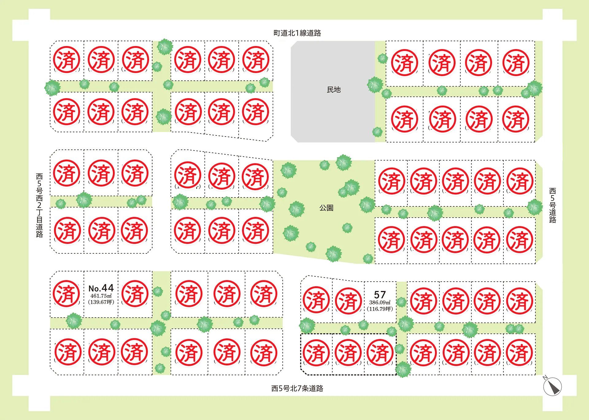 ■「ノースヴィレッジ」区画44・57 面積・販売価格