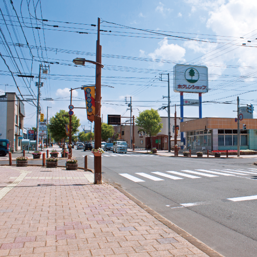 道の駅やスーパーのある市街地商店街まで徒歩13分